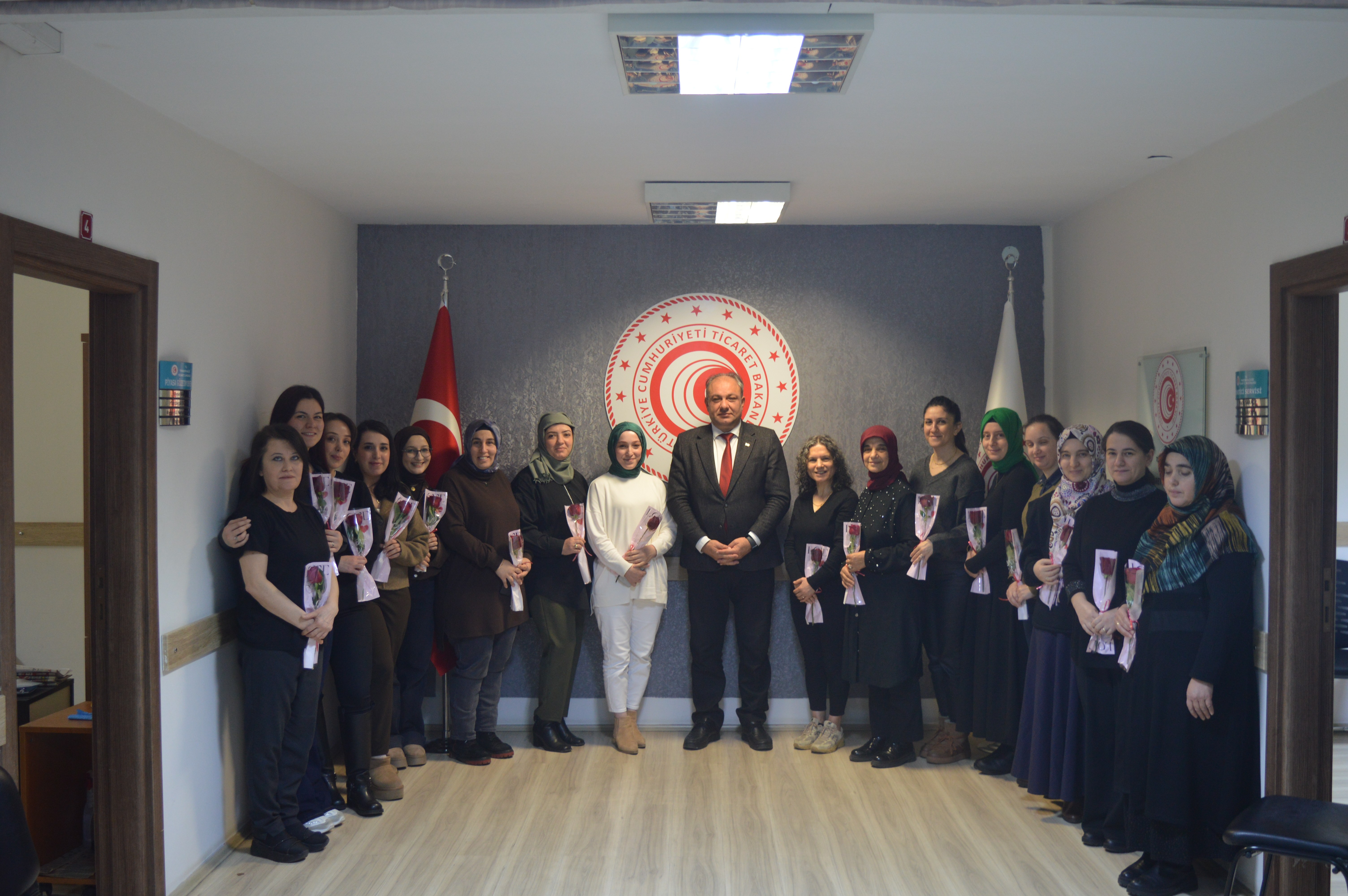 Ticaret İl Müdür Vekilimiz Sayın Hakan BAYRAK; 8 Mart Dünya Kadınlar günü nedeniyle İl Müdürlüğümüz bayan personeli ile bir araya gelerek personelin 8 Mart Dünya Kadınlar Gününü kutladı.